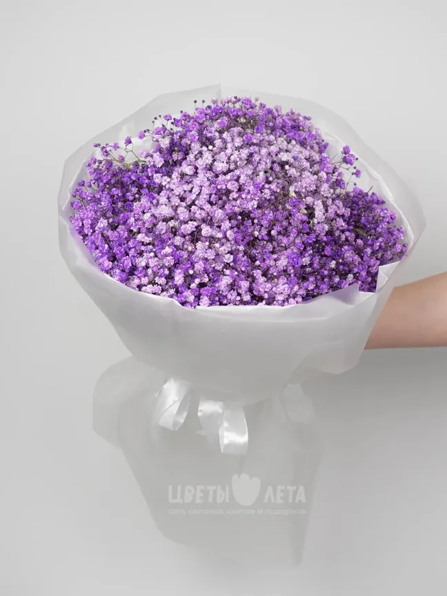 Букет «Ночная сказка» – это волшебство фиолетовой гипсофилы, воплощенное в нежной и воздушной форме.