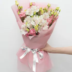 Состав букета в каждой категории подбирается флористом индивидуально. Мы используем самые свежие сезонные цветы в рамках выбранного бюджета, что гарантирует уникальный дизайн и безупречное качество каждой композиции.