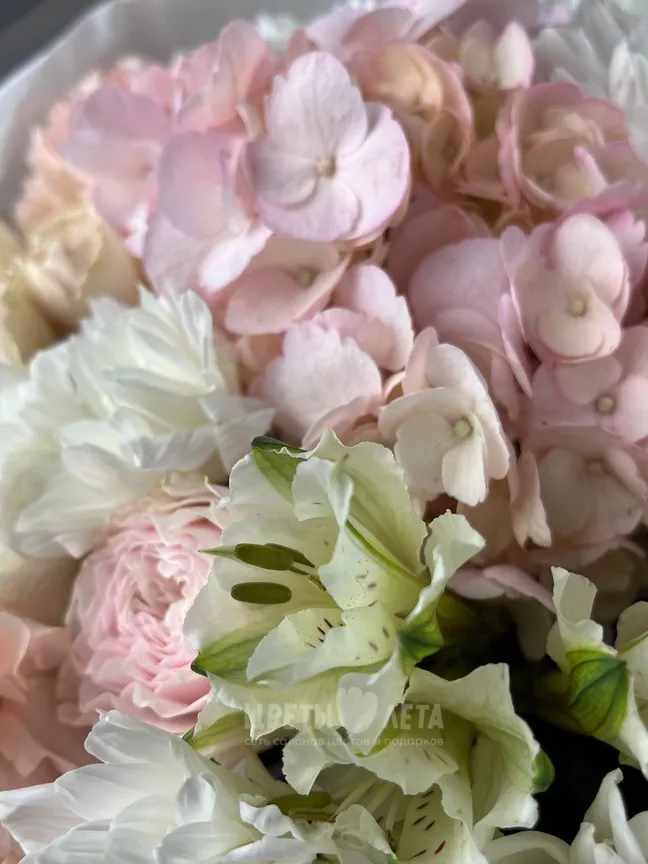 Букет «Пастельная акварель»: нежные оттенки, гармония и утонченность в каждой детали. Состав букета может незначительно меняться в зависимости от сезонности и наличия цветов. Пожалуйста, уточняйте состав и наличие у наших менеджеров или в социальных сетях.
