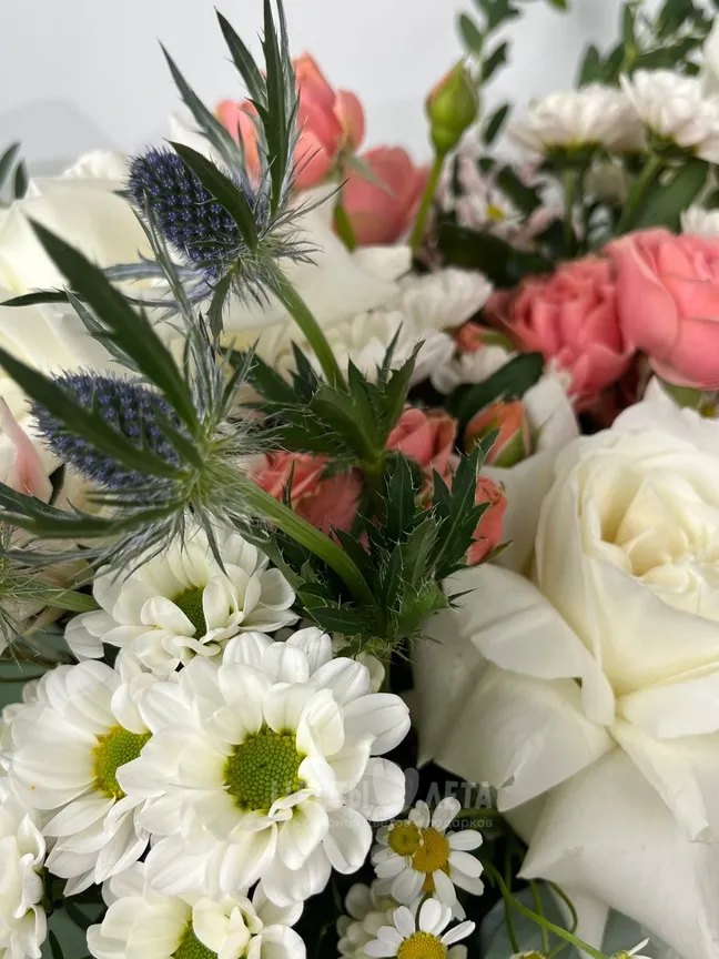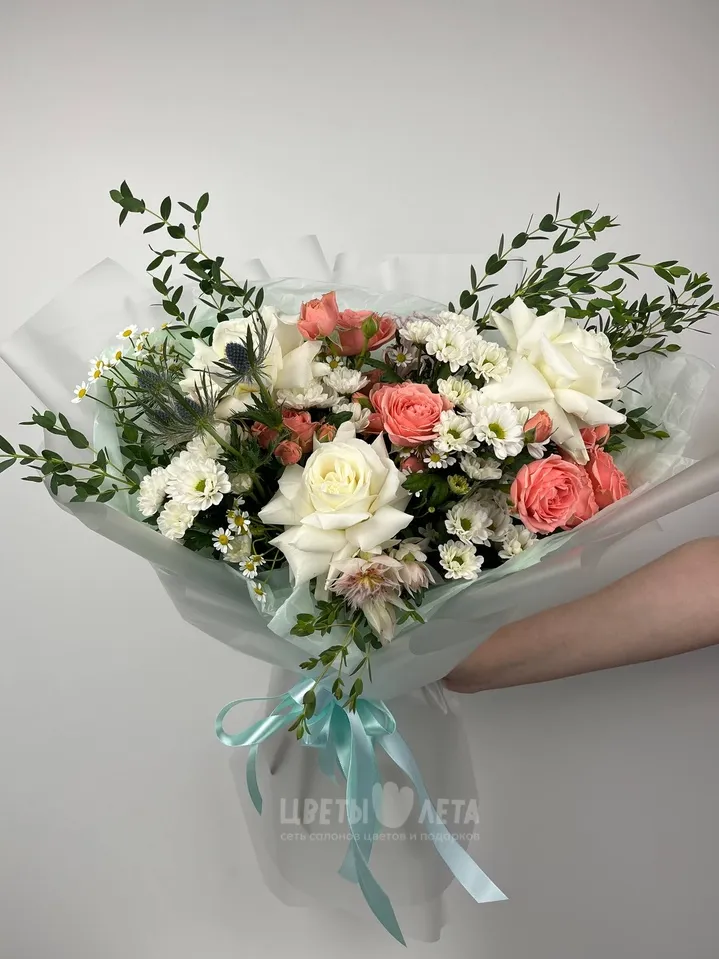 Состав букета может незначительно меняться в зависимости от сезонности и наличия цветов. Пожалуйста, уточняйте состав и наличие у наших менеджеров или в социальных сетях.