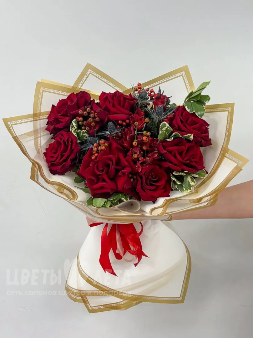 Состав букета может незначительно меняться в зависимости от сезонности и наличия цветов. Пожалуйста, уточняйте состав и наличие у наших менеджеров или в социальных сетях.
