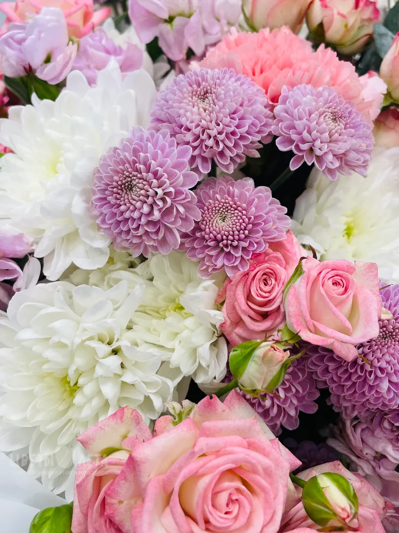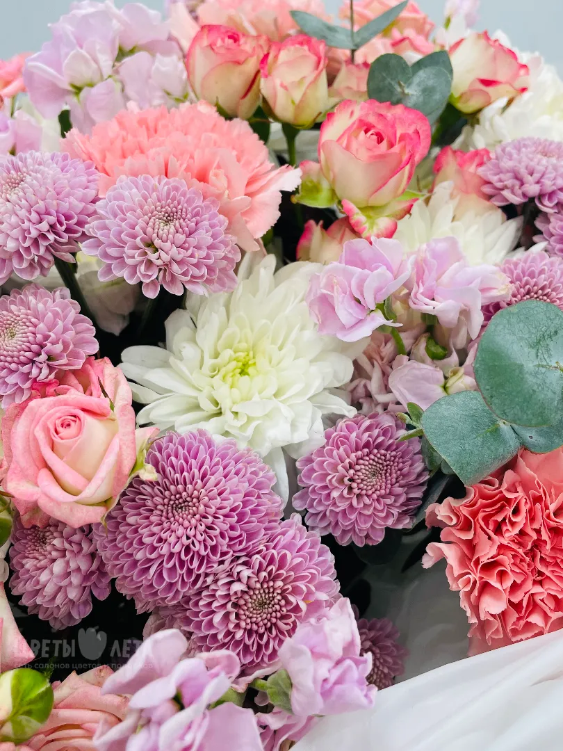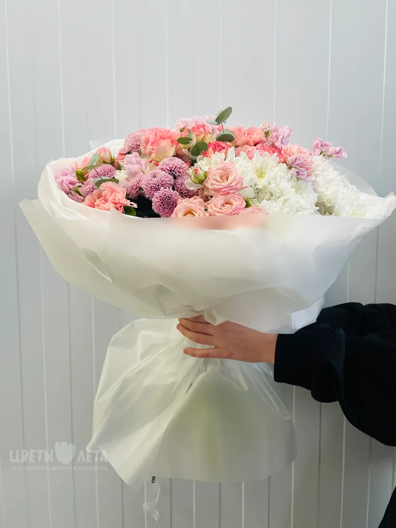 Состав может незначительно меняться, в зависимости от поставок и сезонности цветов, поэтому актуальное наличие уточняйте пожалуйста у менеджеров или в соцсетях.