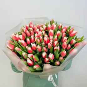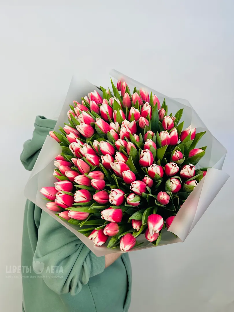 Букет: «Тюльпан с розовой каемкой 101»