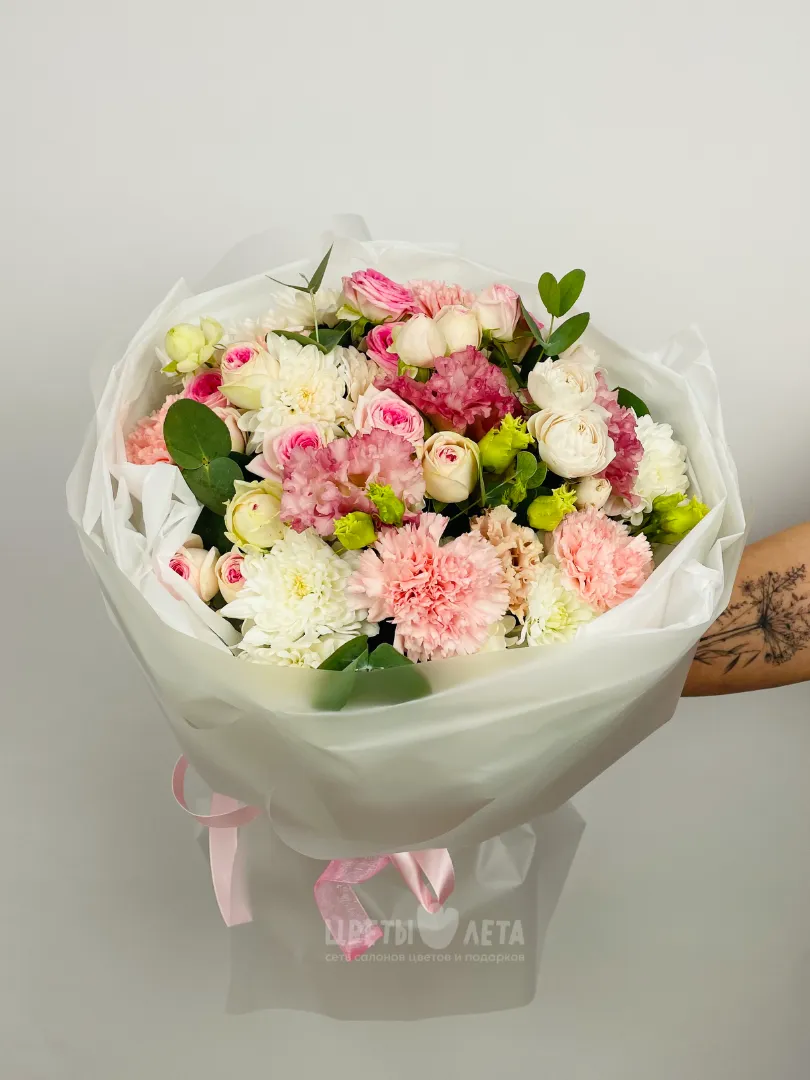 Состав может незначительно меняться, в зависимости от поставок и сезонности цветов, поэтому актуальное наличие уточняйте пожалуйста у менеджеров или в соцсетях.