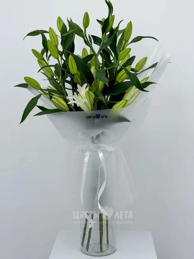 Окунитесь в мир нежности и чувственности с этим восхитительным букетом из лилий. Их нежные лепестки, словно бархат, притягивают взгляд, а тонкий аромат наполняет сердце радостью и теплом. Идеальный способ выразить свои самые искренние чувства.