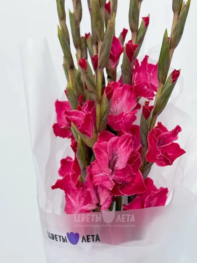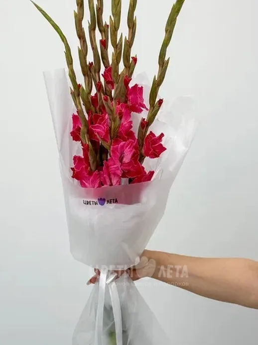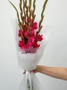 Роскошный букет розовых гладиолусов – это символ элегантности и торжества. Стройные стебли, увенчанные каскадом нежных цветов, создают впечатляющий и запоминающийся образ. Прекрасный подарок для особых случаев и важных событий.