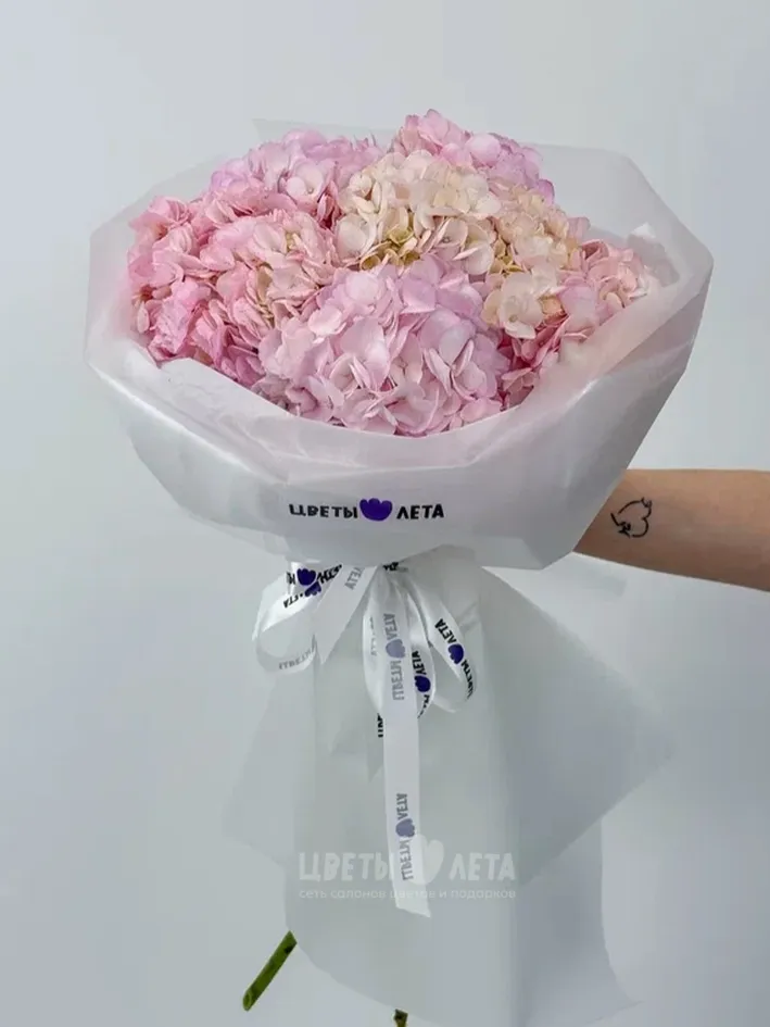 Погрузитесь в нежность с нашим букетом «Розовая гортензия»! Пышные соцветия розовой гортензии, словно воздушное облако, дарят ощущение легкости, безмятежности и самых искренних чувств. Идеальный подарок для тех, кто ценит красоту и романтику.