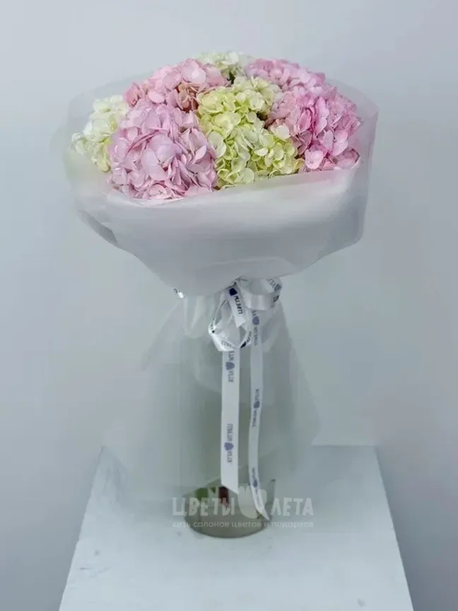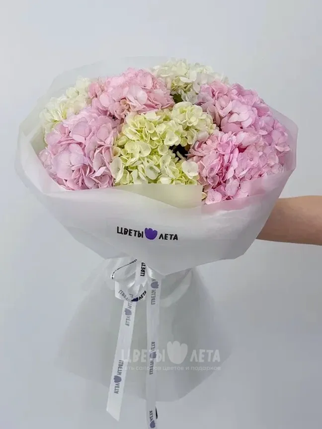 Погрузитесь в нежность с нашим букетом! Пышные соцветия розовой и белой гортензии, словно воздушное облако, дарят ощущение легкости, безмятежности и самых искренних чувств. Идеальный подарок для тех, кто ценит красоту и романтику.