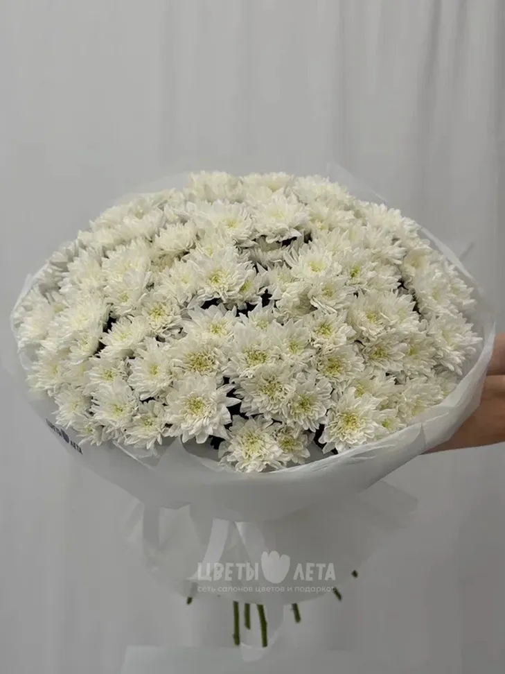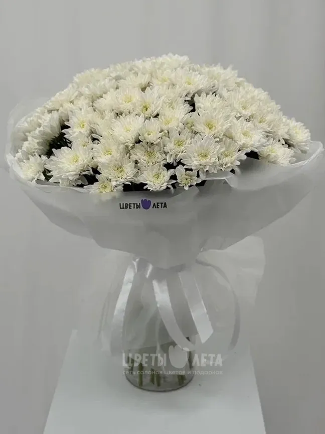 Изысканный букет из белой хризантемы - излучает чистоту и свежесть! Этот элегантный букет станет прекрасным подарком для любого случая, наполняя пространство светом и гармонией!