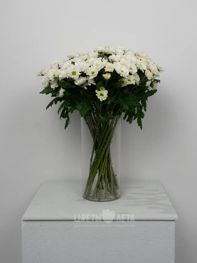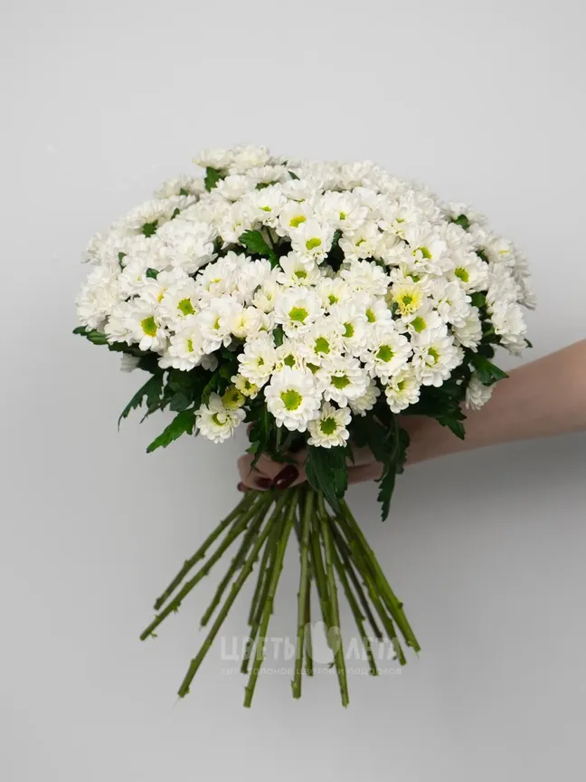 Букет «Белый луг» – это свежесть и нежность белой сантини, воплощенные в одном букете.