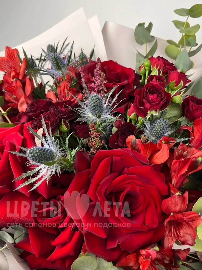 Букет «Рубиновая любовь»: расскажите о своих чувствах роскошным языком красных роз! Состав букета может незначительно меняться в зависимости от сезонности и наличия цветов. Пожалуйста, уточняйте состав и наличие у наших менеджеров или в социальных сетях.