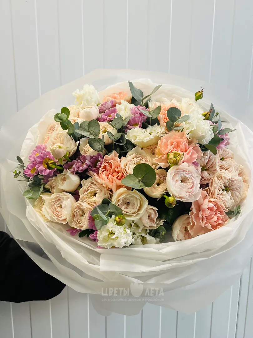 Состав букета может незначительно меняться в зависимости от сезонности и наличия цветов. Пожалуйста, уточняйте состав и наличие у наших менеджеров или в социальных сетях.