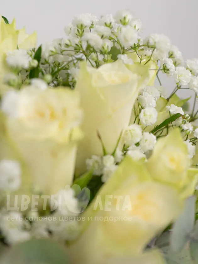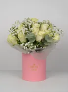 Состав композиции может незначительно меняться в зависимости от сезонности и наличия цветов. Пожалуйста, уточняйте состав и наличие у наших менеджеров или в социальных сетях.