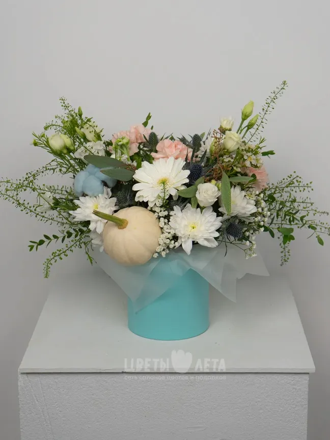Состав композиции может незначительно меняться в зависимости от сезонности и наличия цветов. Пожалуйста, уточняйте состав и наличие у наших менеджеров или в социальных сетях.