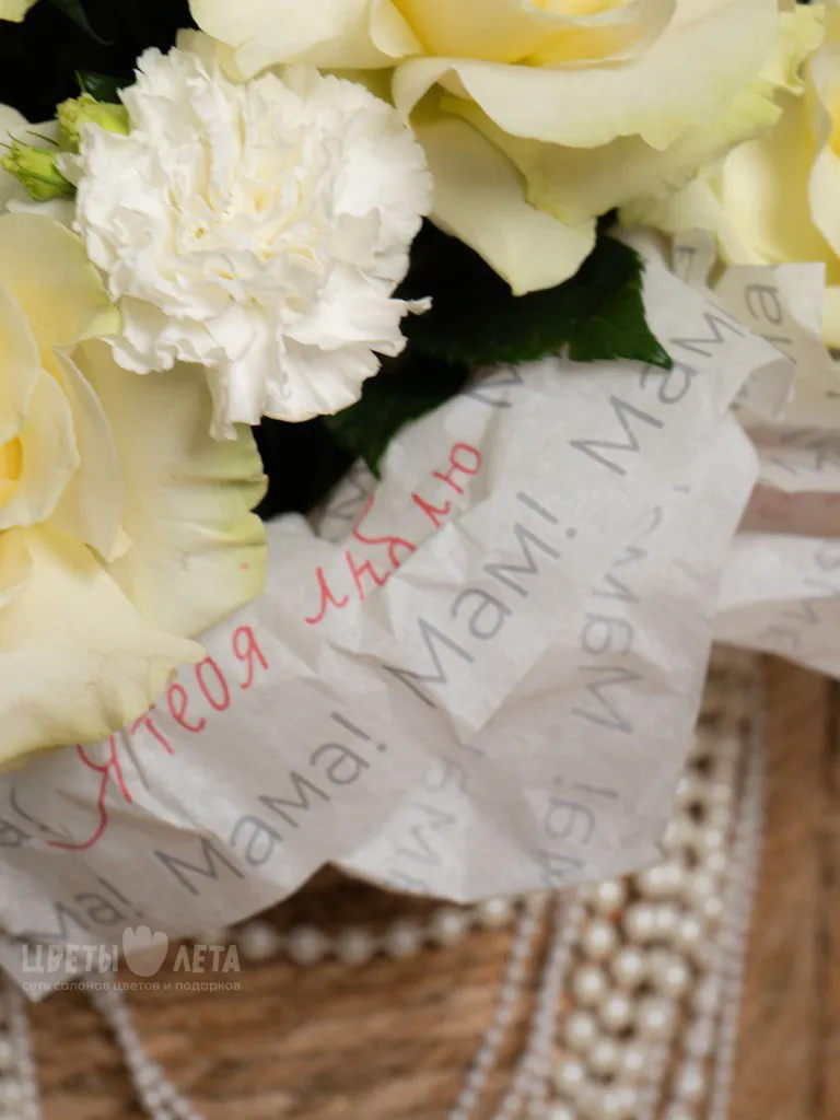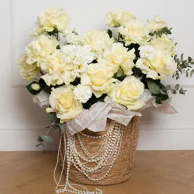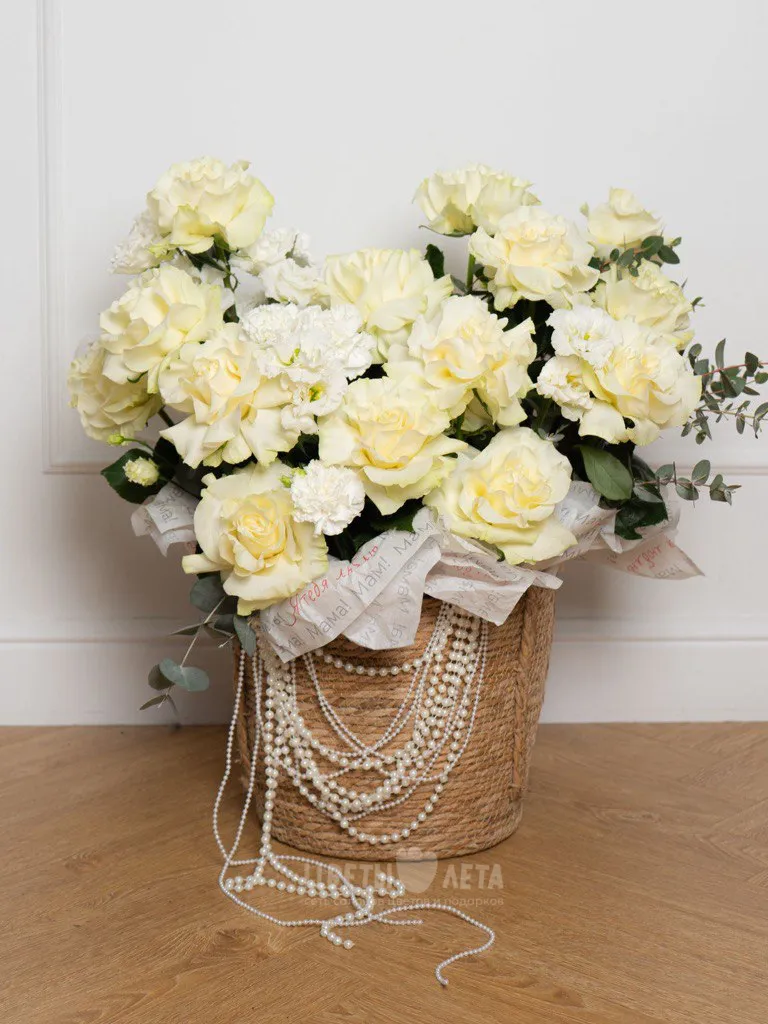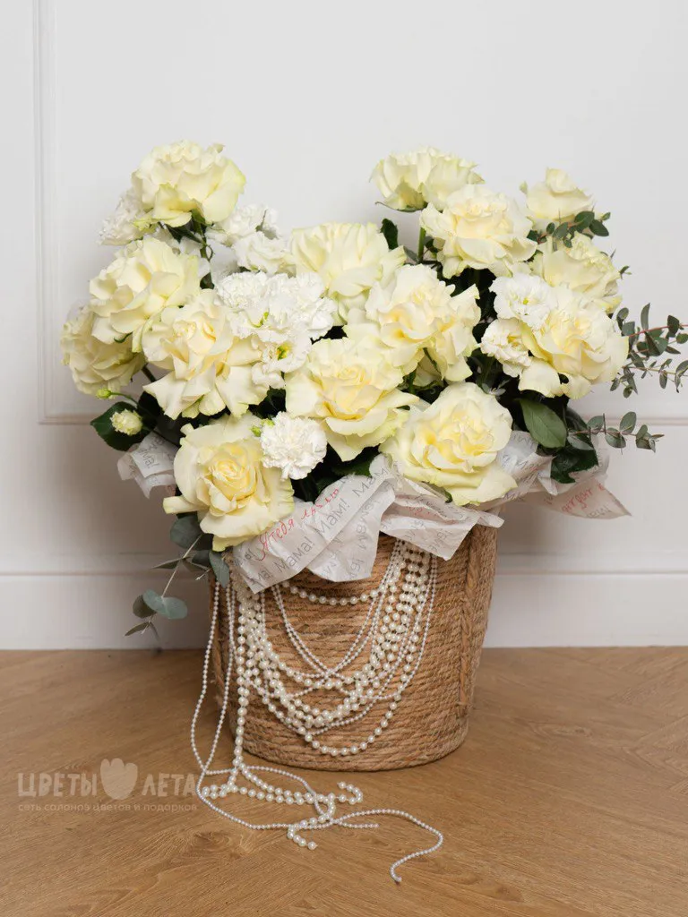 Выразите свою глубокую любовь и уважение к маме с композицией «Жемчужная Элегантность». Это не просто цветы, это жемчужное сияние самых искренних чувств, воплощенное в деликатных белых бутонах. Подарите ей момент чистой красоты и нежности.