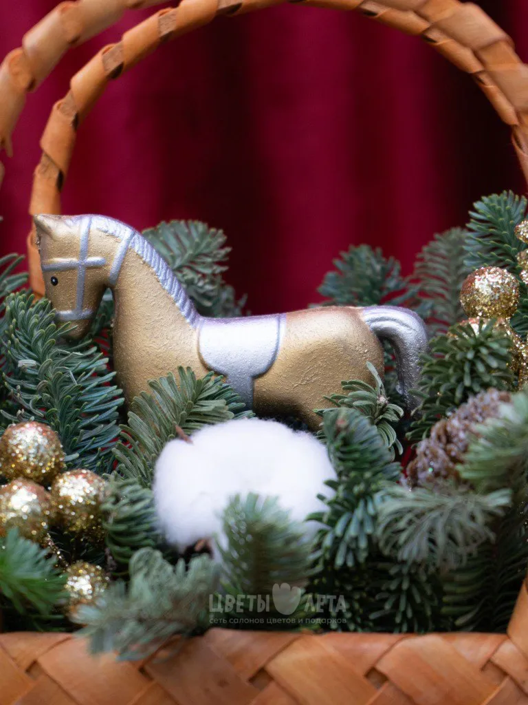 Создайте волшебную атмосферу праздника с нашими уникальными новогодними композициями. Каждая из них – это произведение искусства, сочетающее свежесть еловых веток и сияние новогодних игрушек.