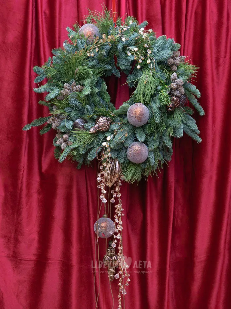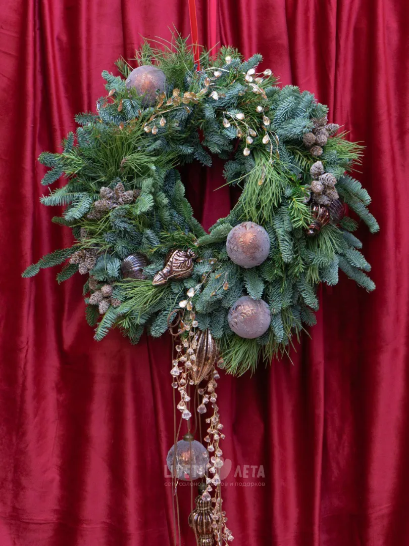 Создайте волшебную атмосферу праздника с нашими уникальными новогодними композициями. Каждая из них – это произведение искусства, сочетающее свежесть еловых веток и сияние новогодних игрушек.
