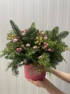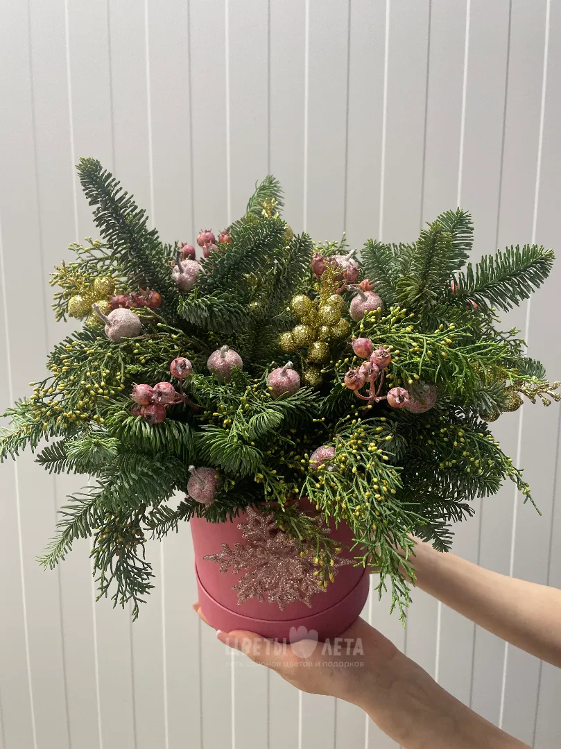 Создайте волшебную атмосферу праздника с нашими уникальными новогодними композициями. Каждая из них – это произведение искусства, сочетающее свежесть еловых веток и сияние новогодних игрушек.