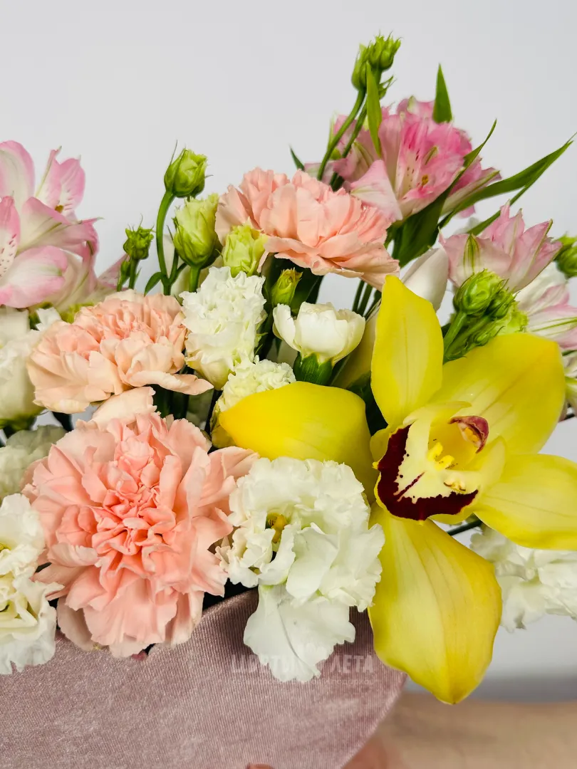 - Состав может незначительно меняться, в зависимости от поставок и сезонности цветов, поэтому актуальное наличие уточняйте пожалуйста у менеджеров или в соцсетях.