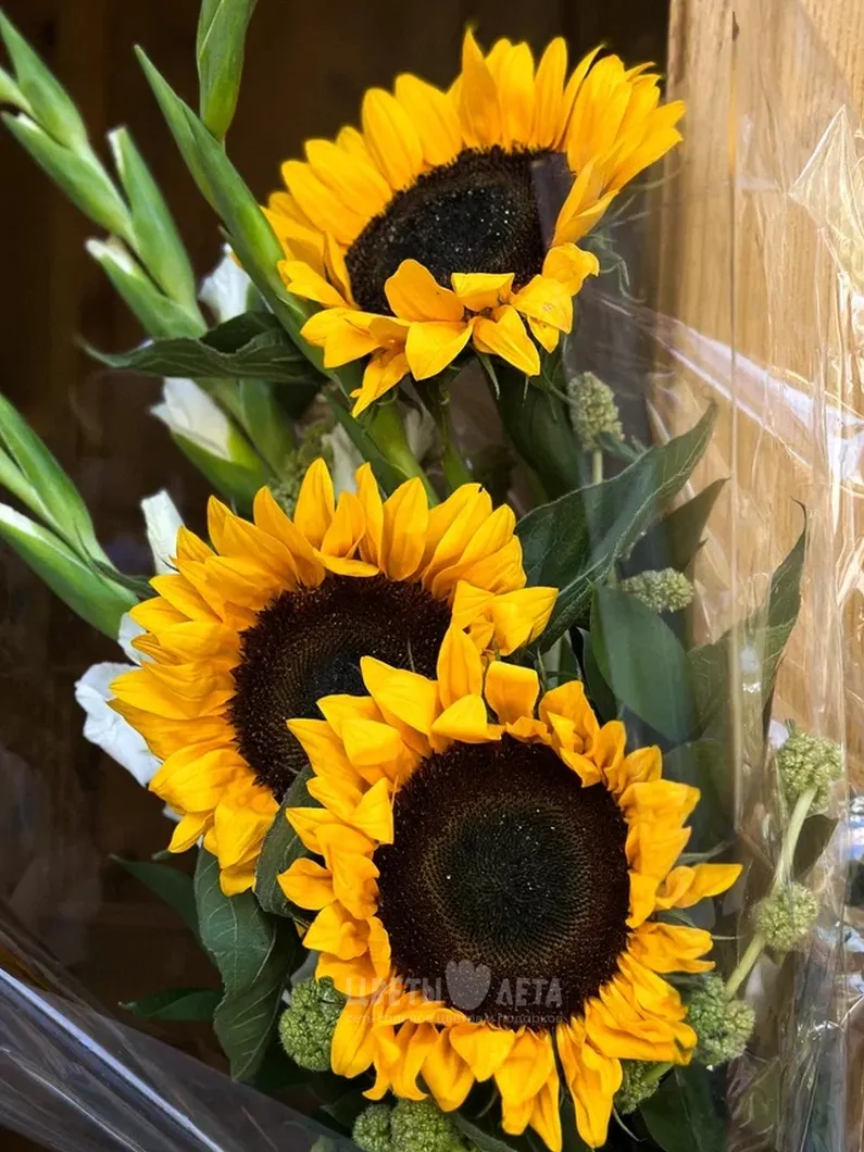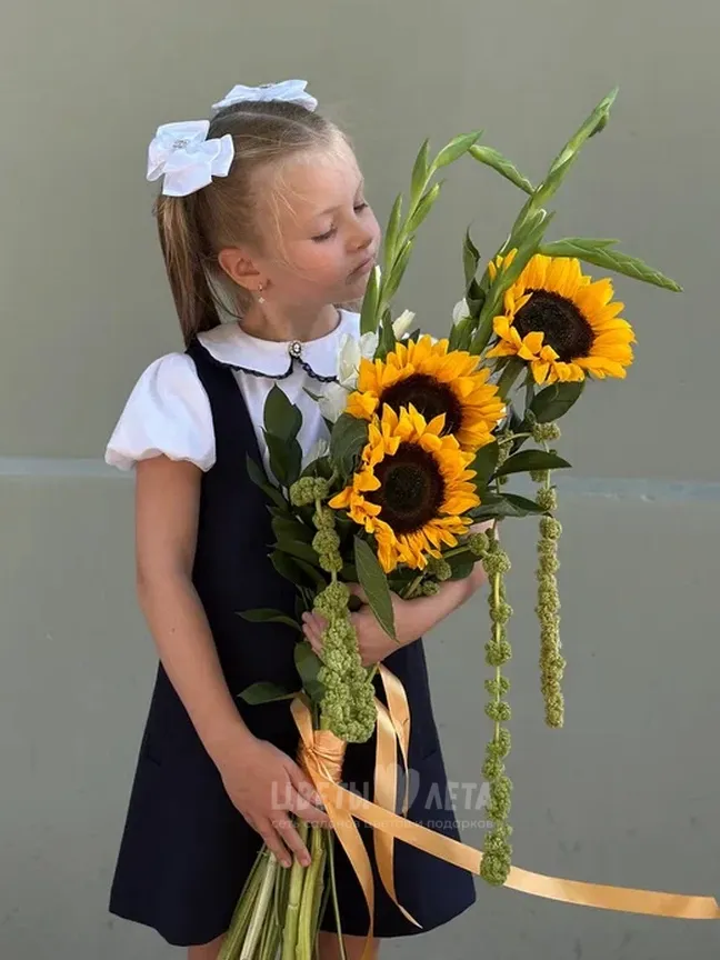 Яркий и солнечный букет подсолнухов - отличный способ поздравить с Днем Знаний!