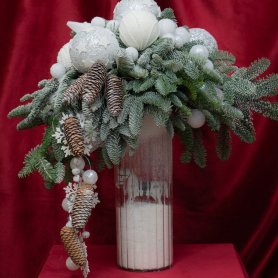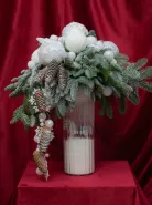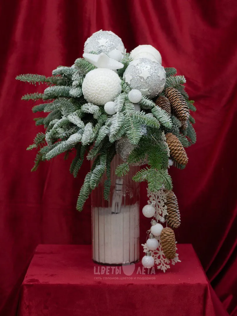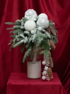 Создайте волшебную атмосферу праздника с нашими уникальными новогодними композициями. Каждая из них – это произведение искусства, сочетающее свежесть еловых веток и сияние новогодних игрушек.