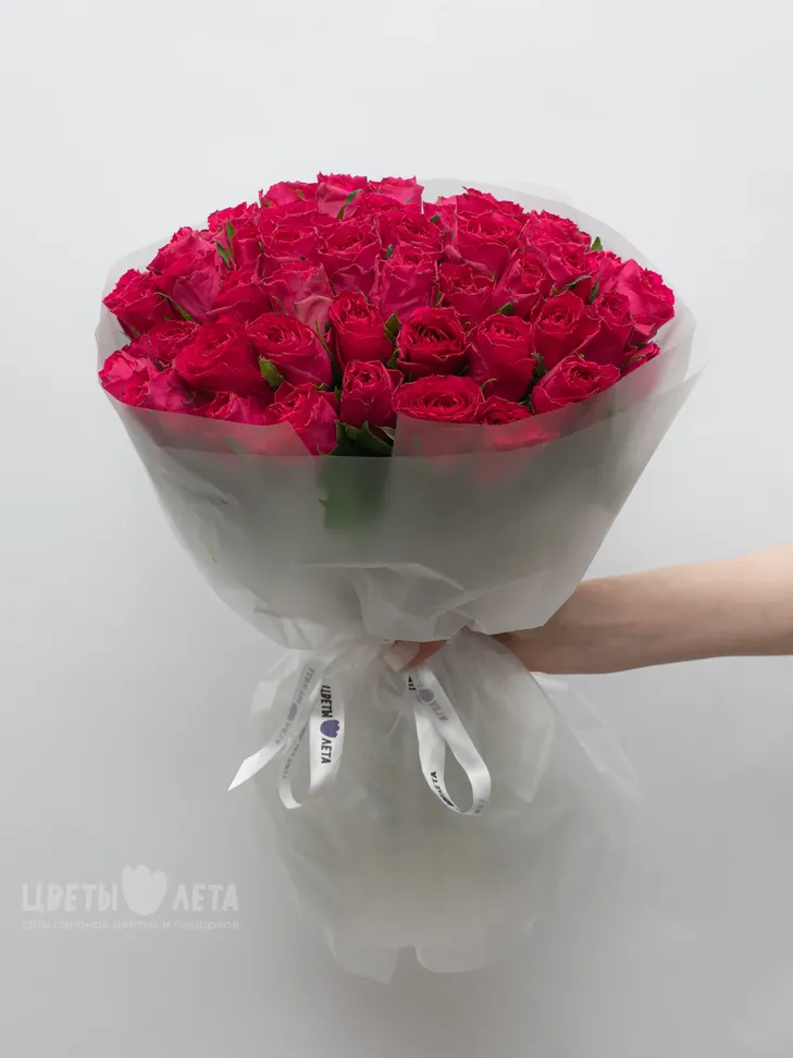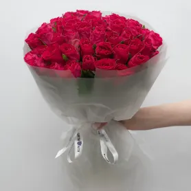Букет: 51 Ярко-Розовая Роза Кения 45см