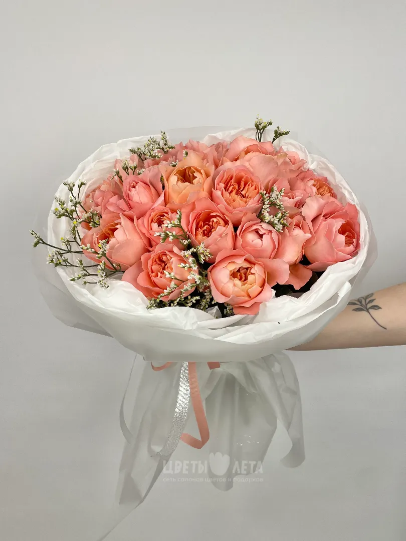 Состав букета может незначительно меняться в зависимости от сезонности и наличия цветов. Пожалуйста, уточняйте состав и наличие у наших менеджеров или в социальных сетях.